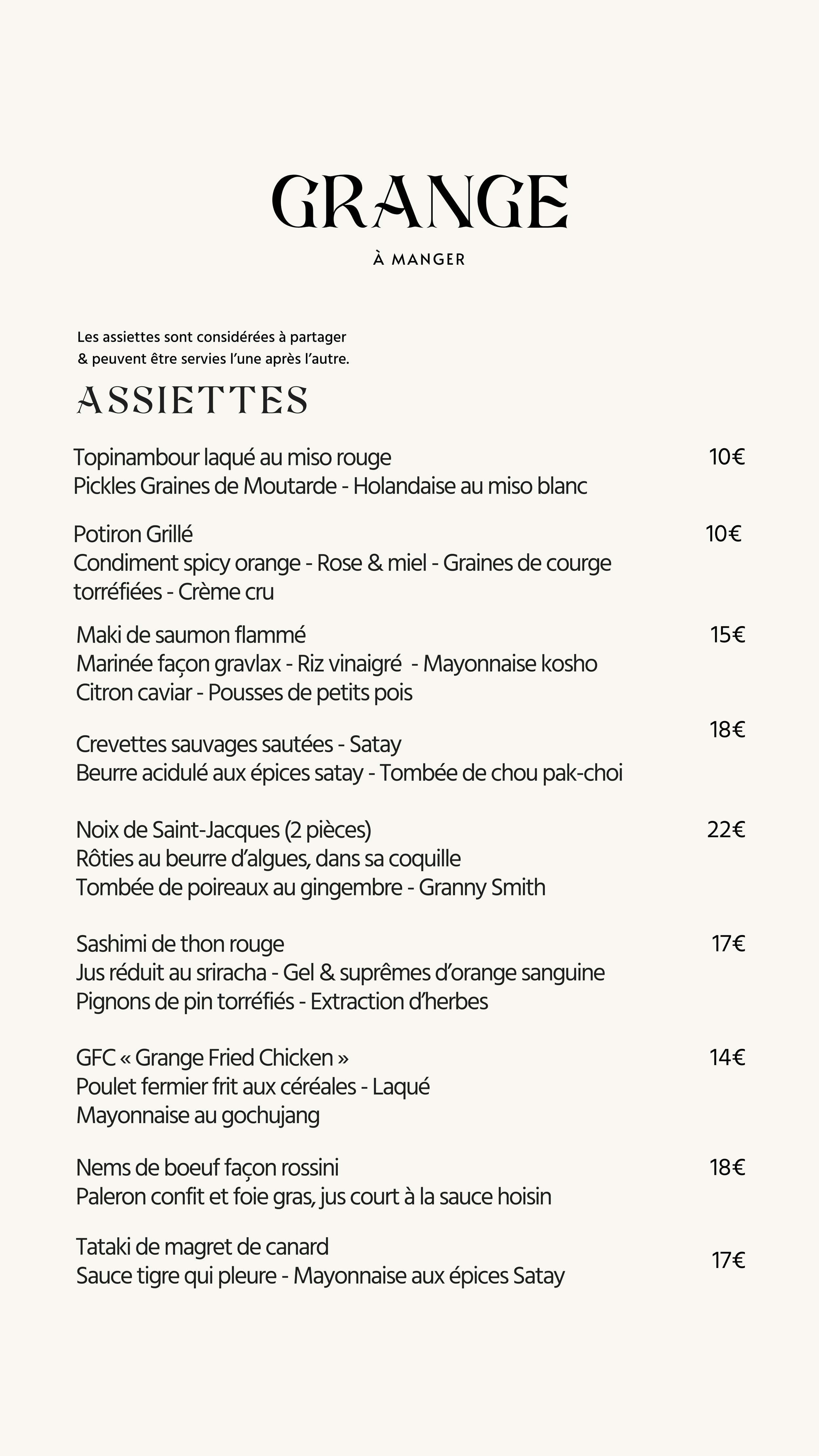 *Découvrez notre cuisine de partage sur une base de gastronomie française aux influences asiatiques.