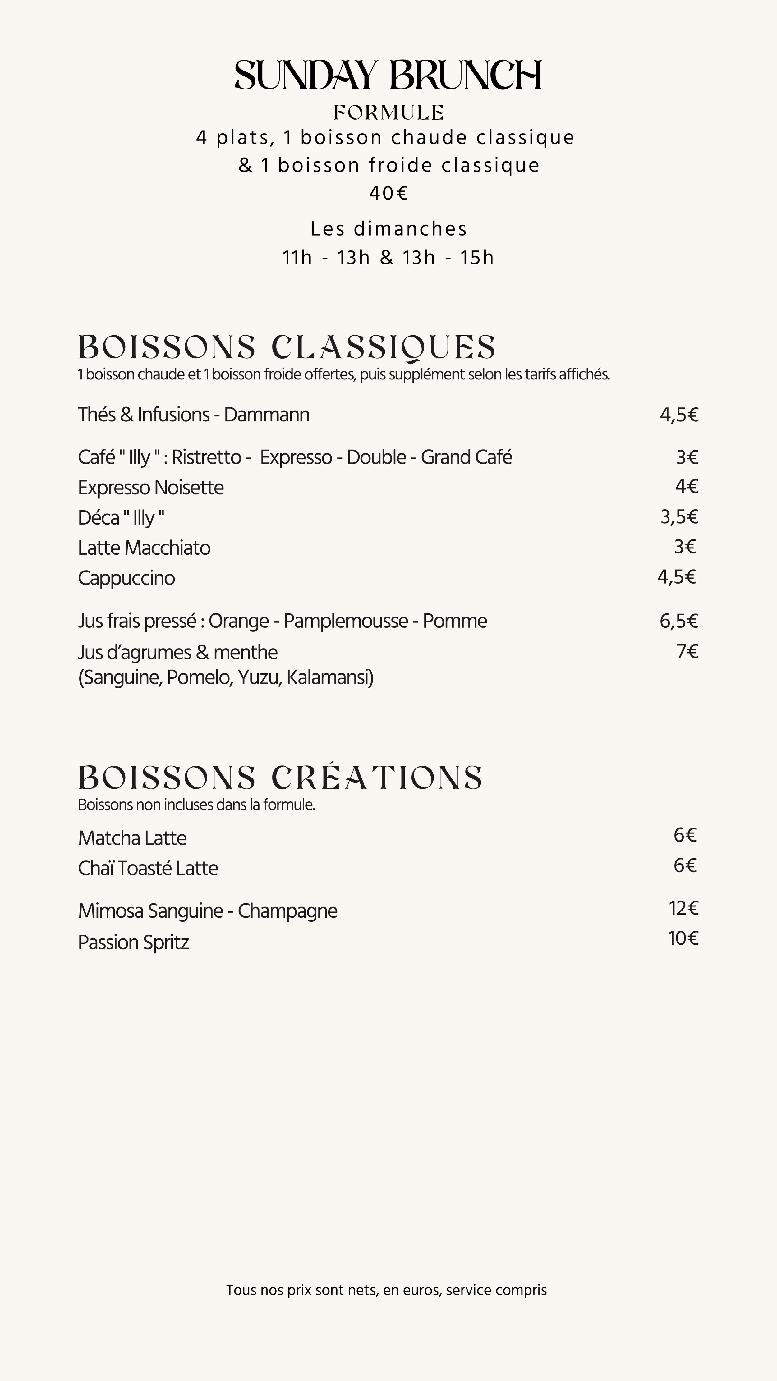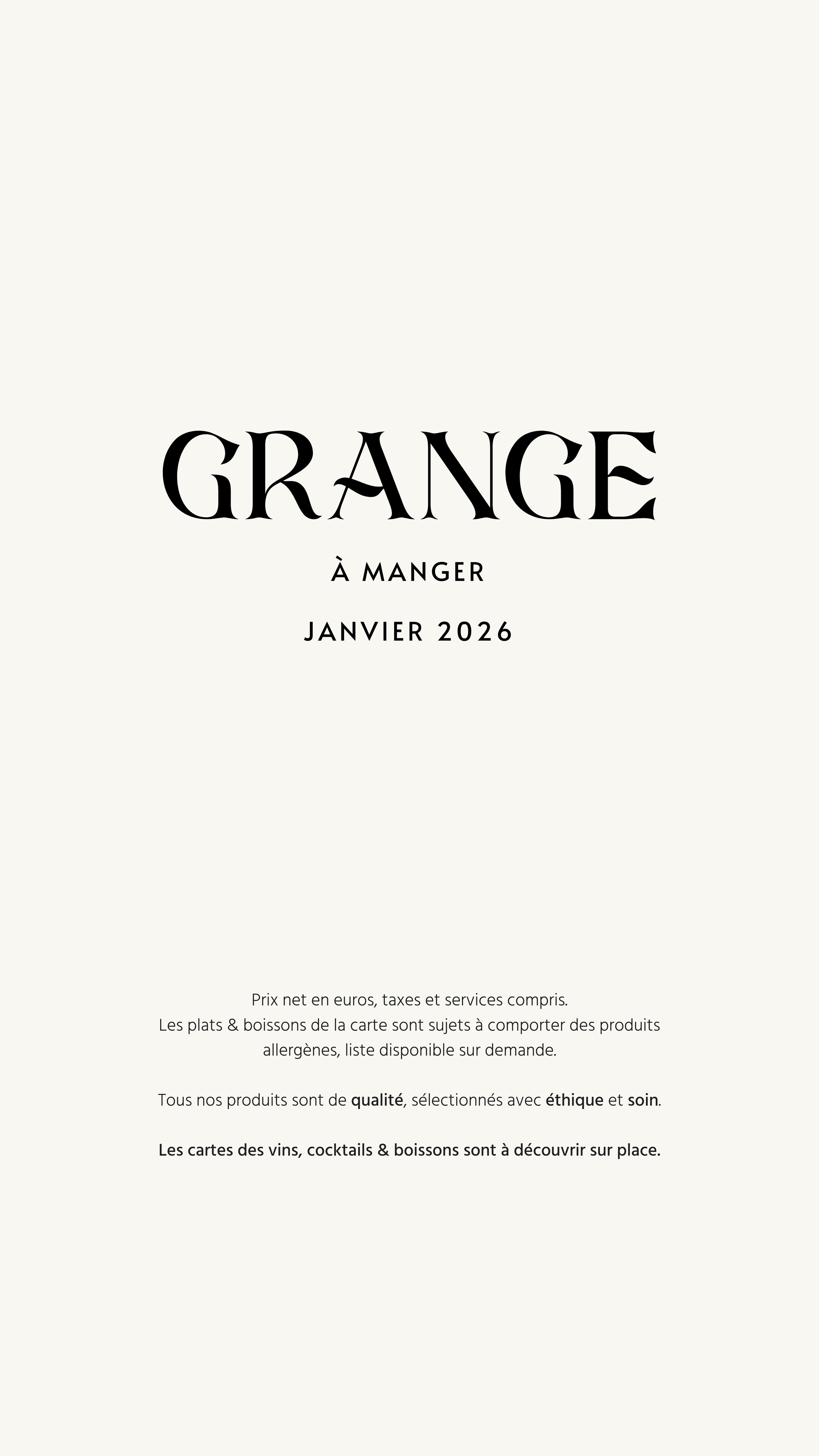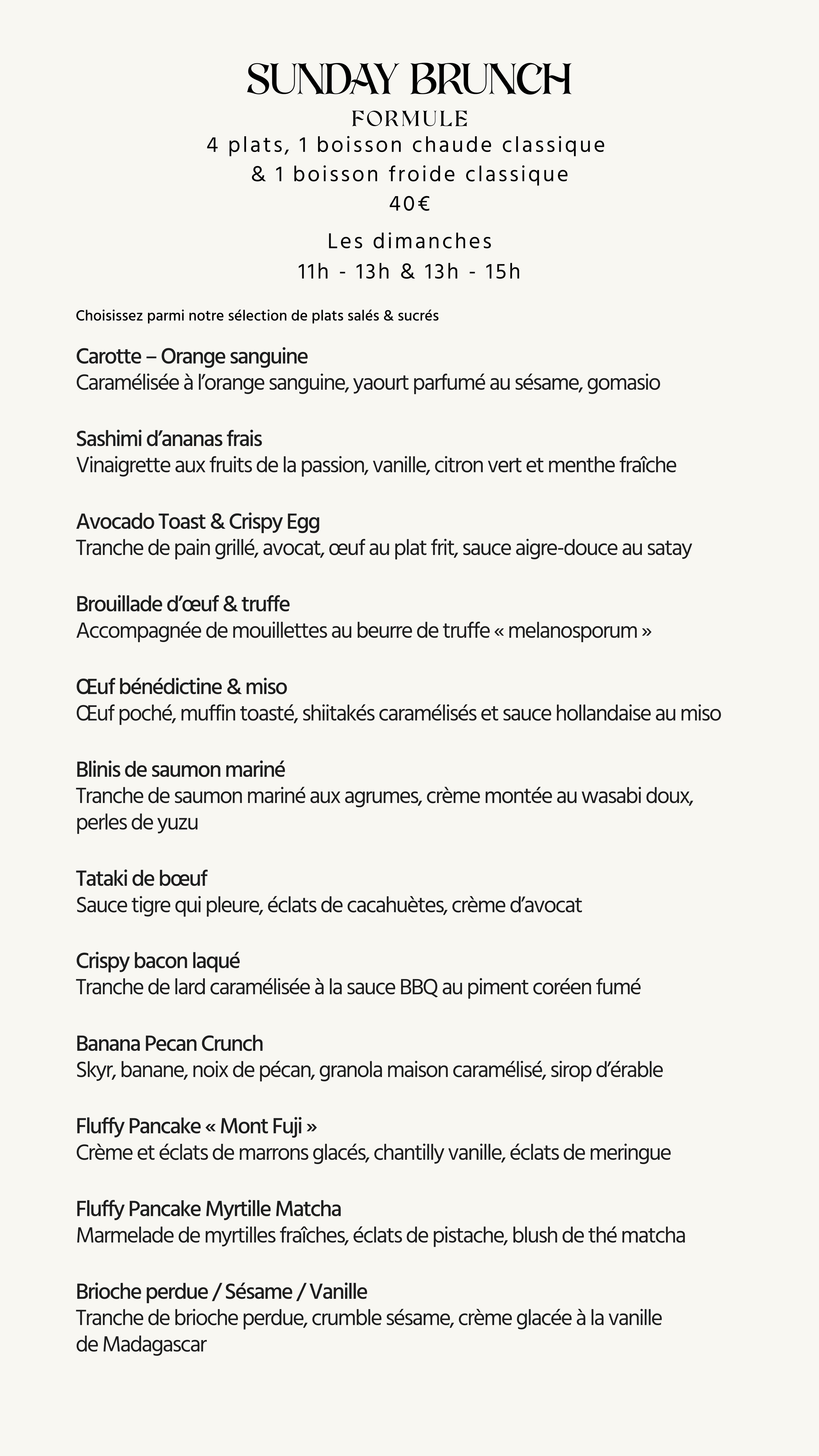 Les plats & boissons de la carte sont sujets à comporter des produits allergènes, liste disponible sur demande.